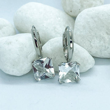 White Topaz Trillion Cut Earrings in Plated Yellow Gold Silver | Stargaze Earrings