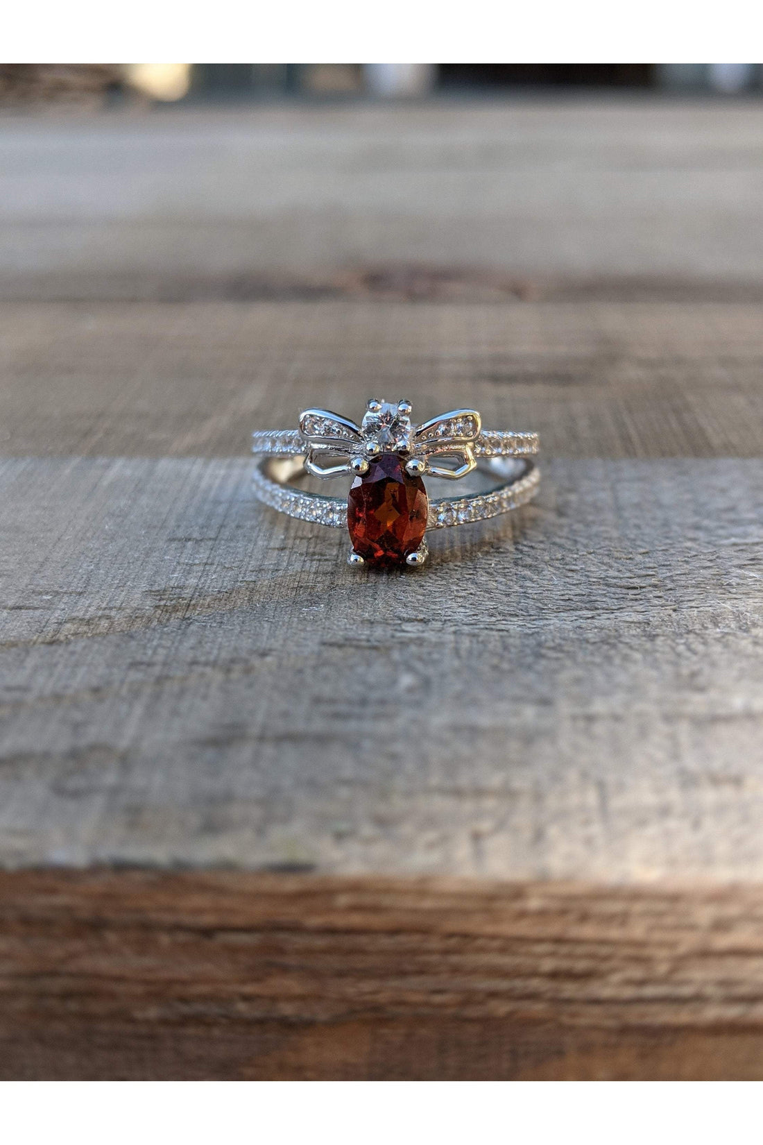 Bee Ring, Dark Orange Red Hessonite Garnet
