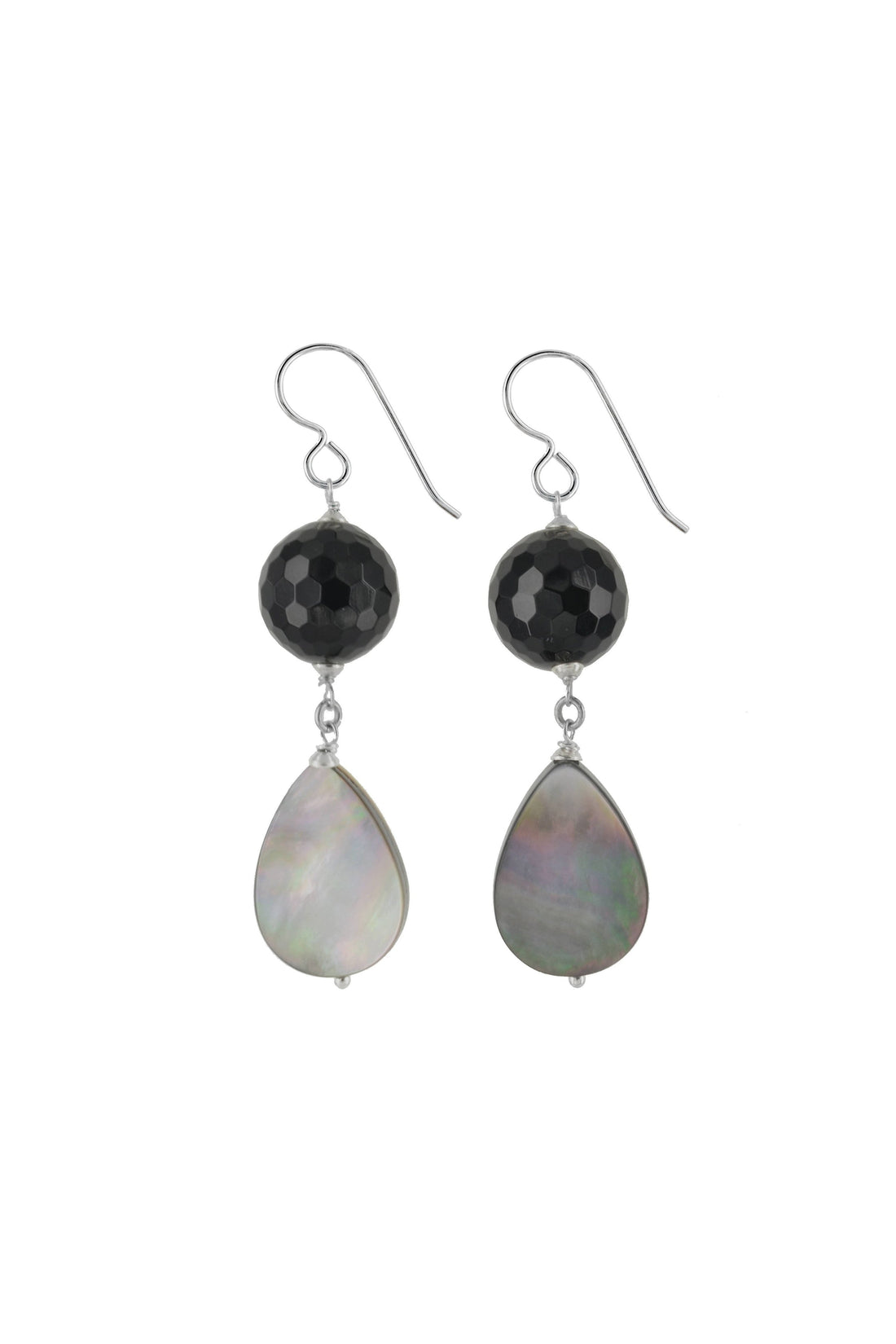Black Onyx, Mother of Pearl Gemstone Dainty Earrings