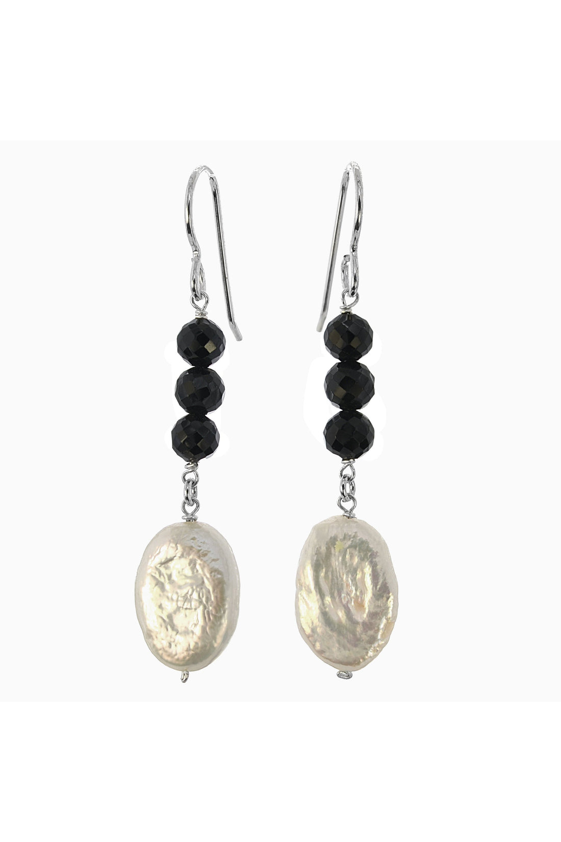 Black and White Earrins, Pearl, Black Onyx Gemstone Earrings