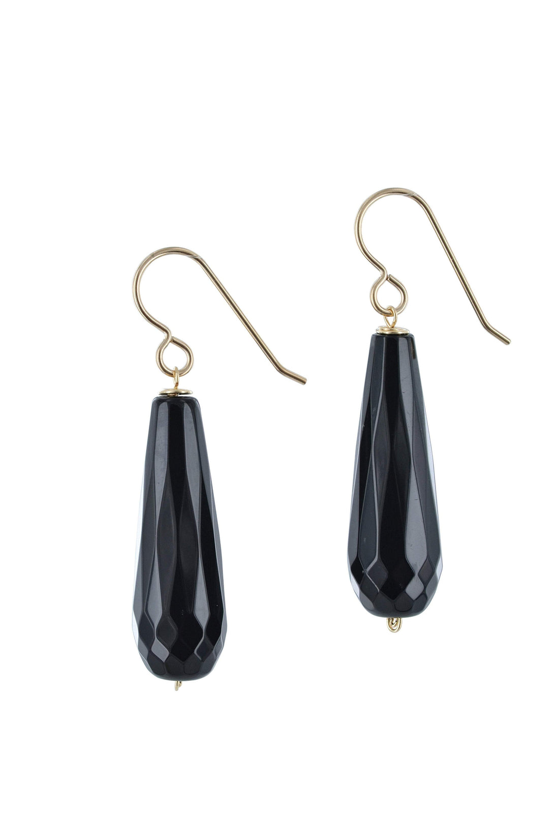 Black Onyx Gemstone, Long Briolette Gold Earrings, Black Friday Deal