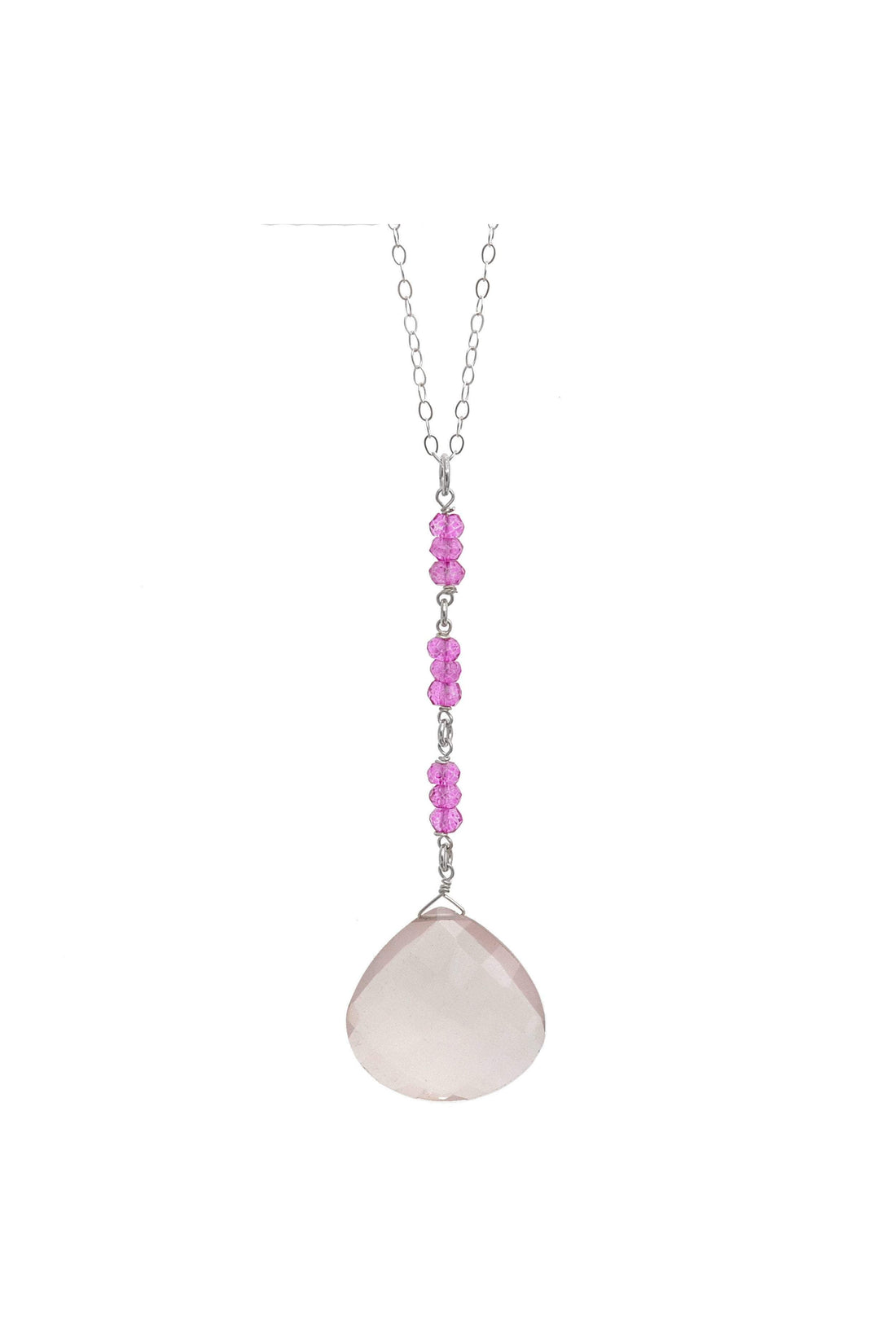 Pink, Rose Quartz Briolette Teardrop Gemstone Long Silver Necklace