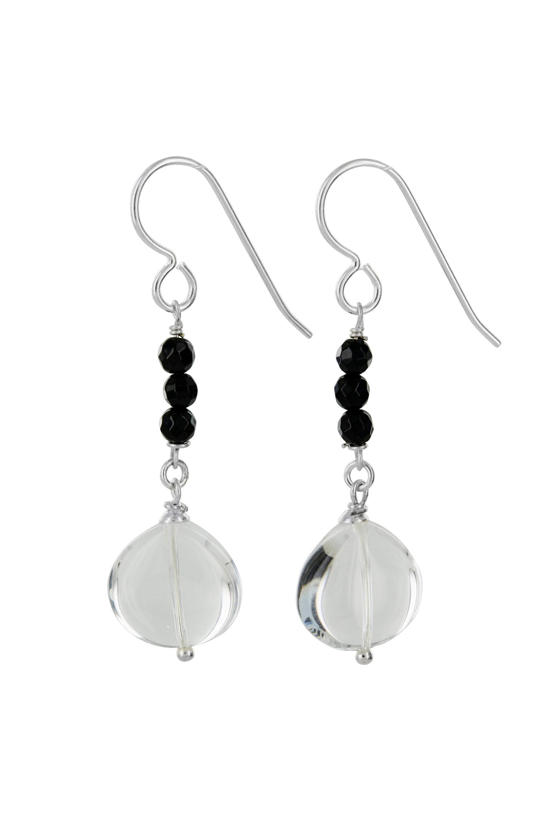Rock Crystal, Black Onyx Earrings, Black and White Jewelry