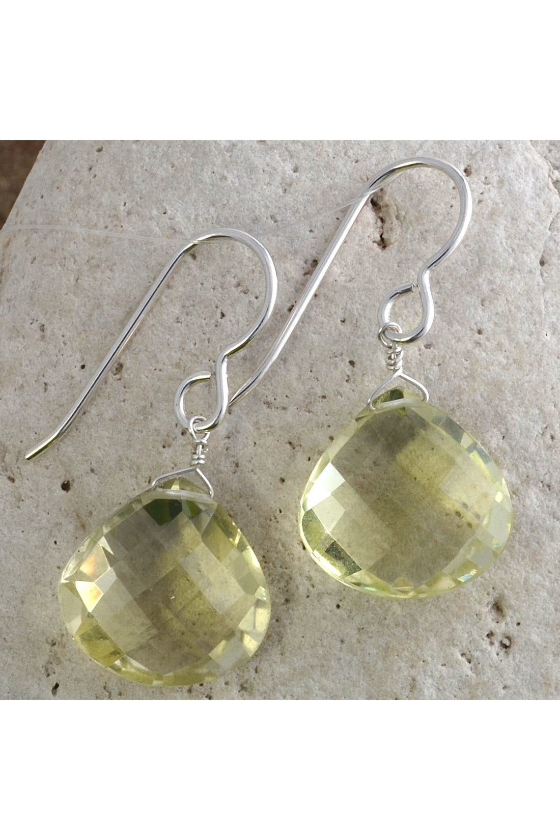 Citrine Earrings, Golden Yellow Gemstone Drop Briolette