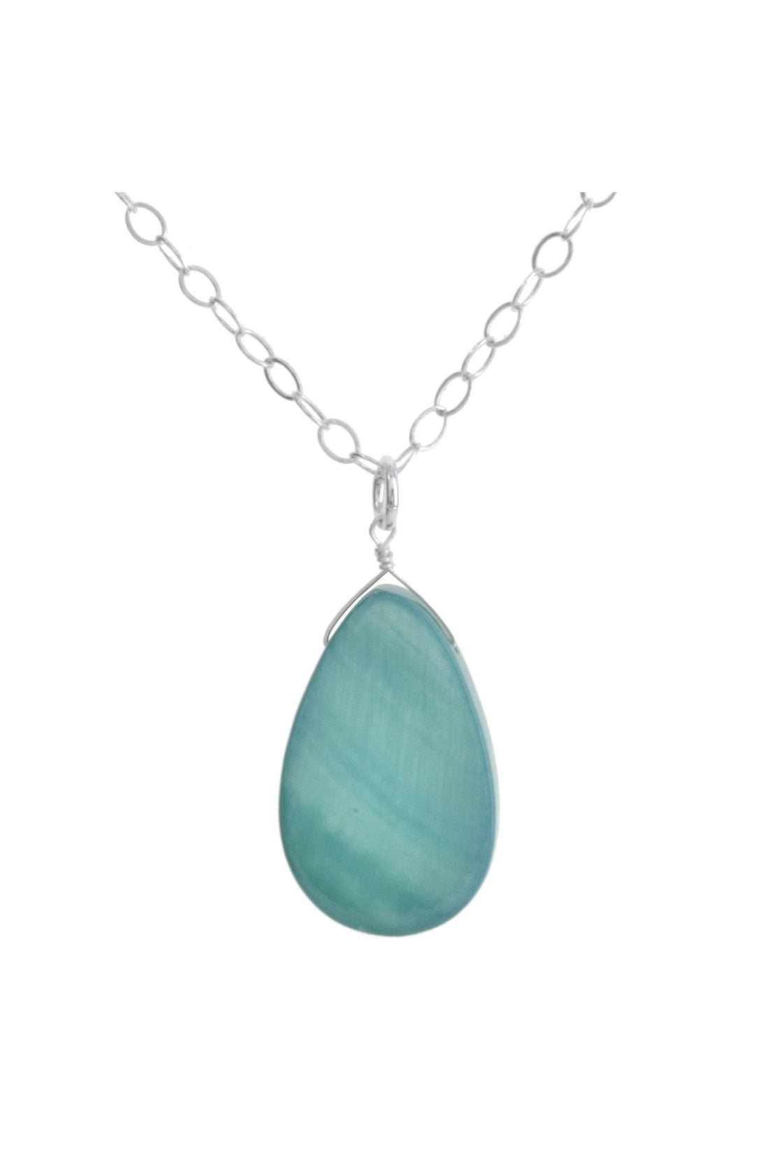 Light Blue Mother of Pearl Dangle Teardrop Necklace