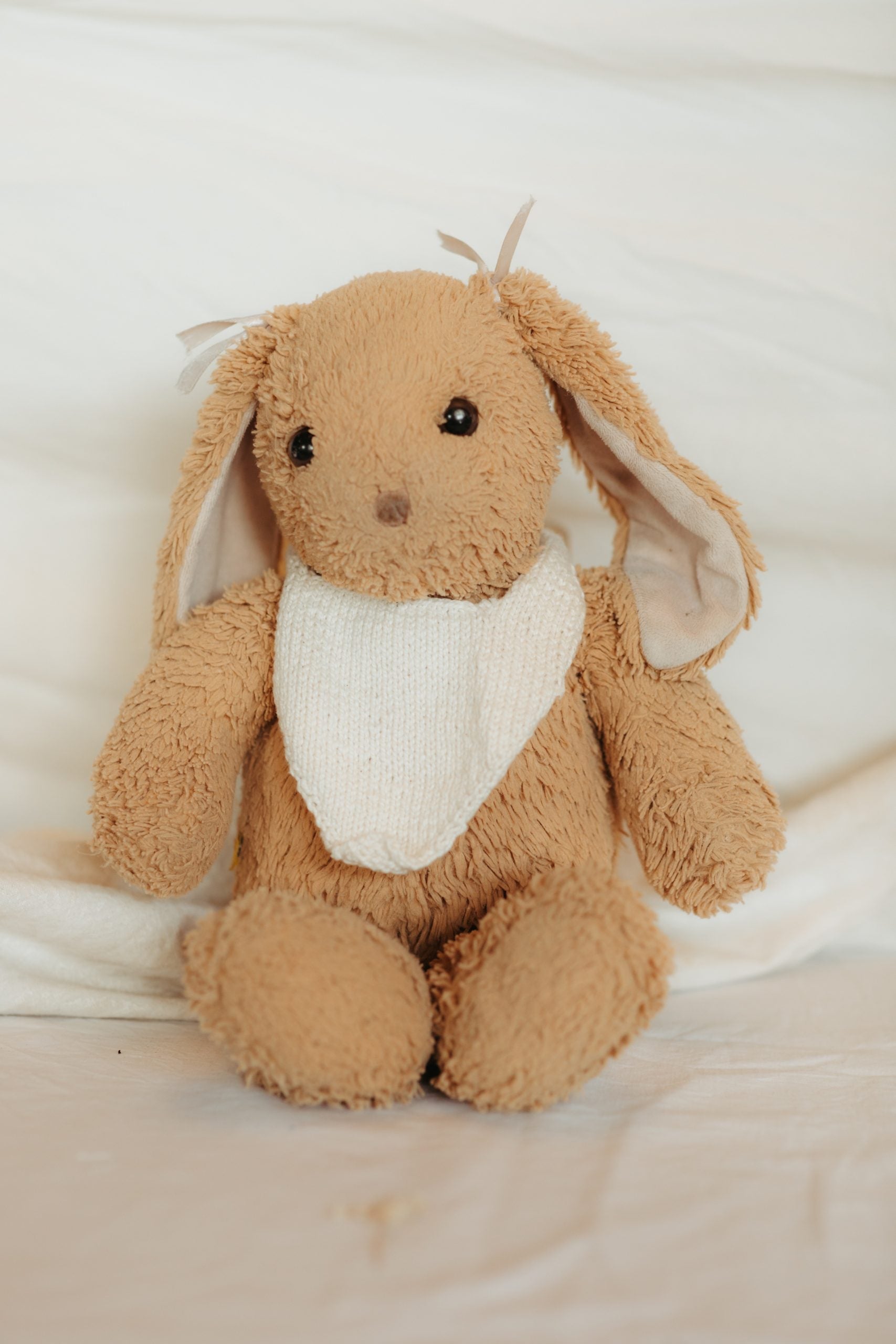 The bandanas are matching in colour to our organic cotton ribbed baby beanies and booties. Super soft, they are easily closed with a cute button at the back and ideal for catching those small dribbles and keeping the jersey clean.