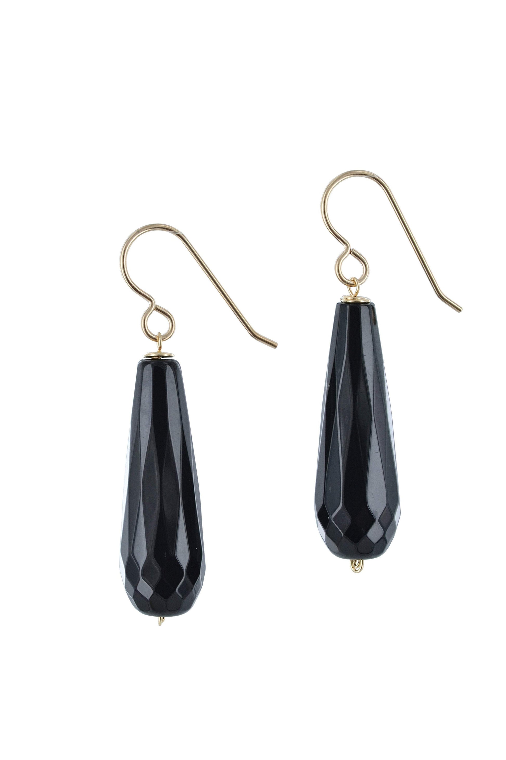 SHAPE / CUT OF GEMS: Black Onyx: Long drop faceted briolette