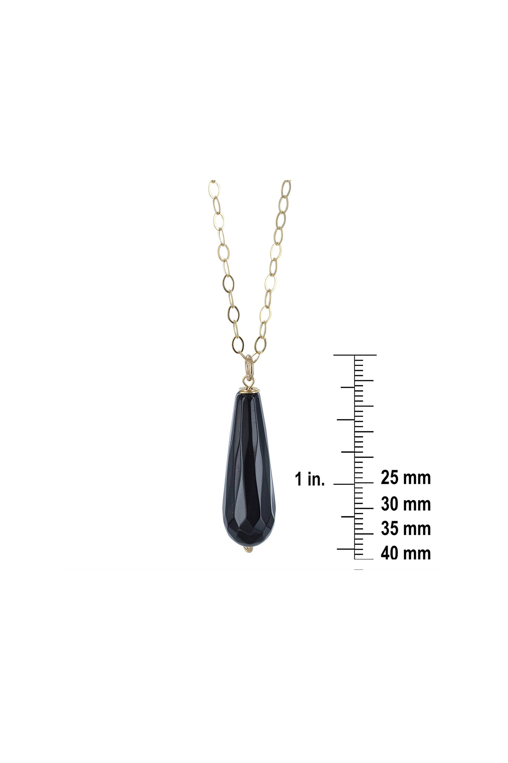 Such simple elegance in black and gold, this drop pendant Black Onyx necklace handmade with 14K gold-filled material.