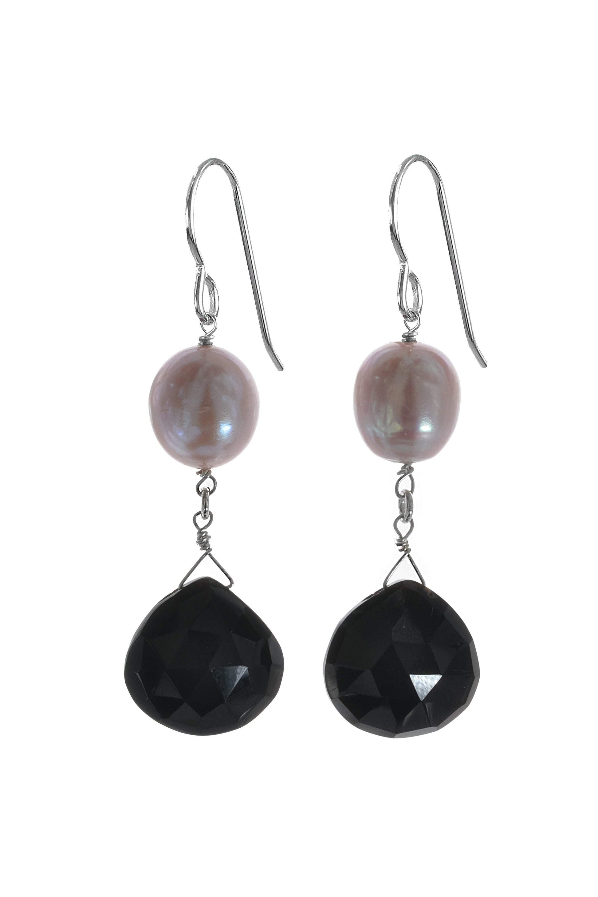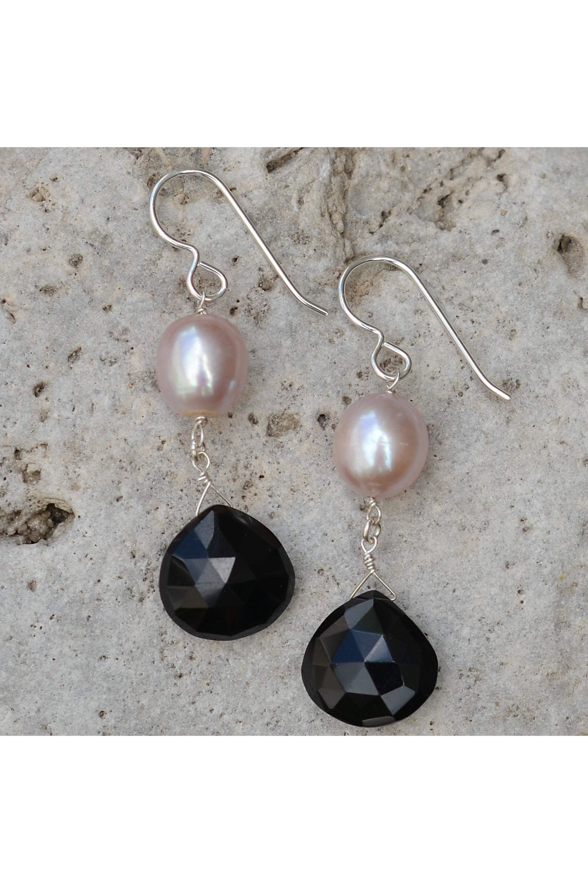 Black Onyx, Pearl Earrings with Gemstone Black and White Dangle Earrings - 925 Sterling Silver - Unique Gifts for Mom - ASHANTI Jewels