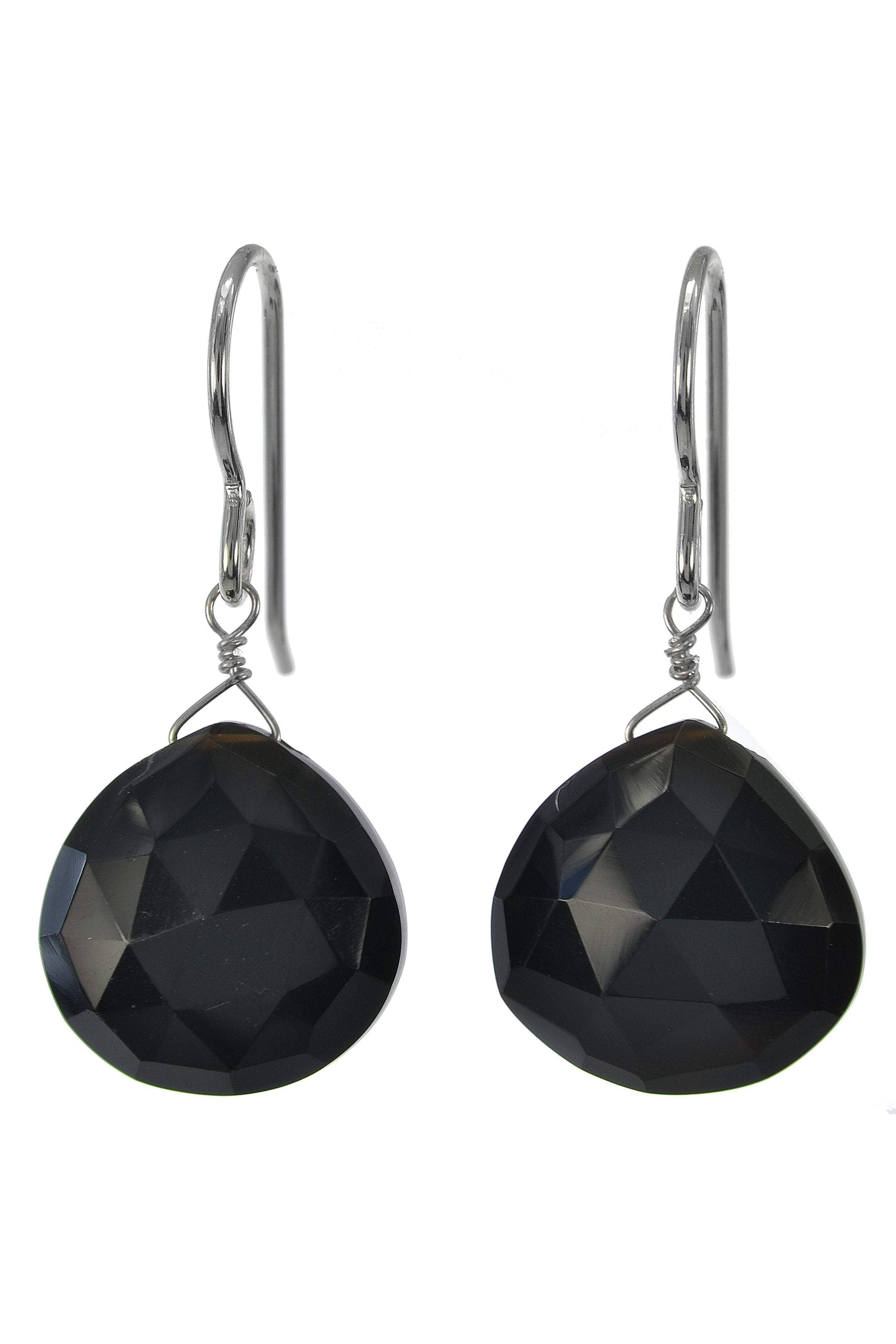 Two faceted Pear-shaped Black Onyx gemstones are the focus of attention in this pair of chic drop black earrings.