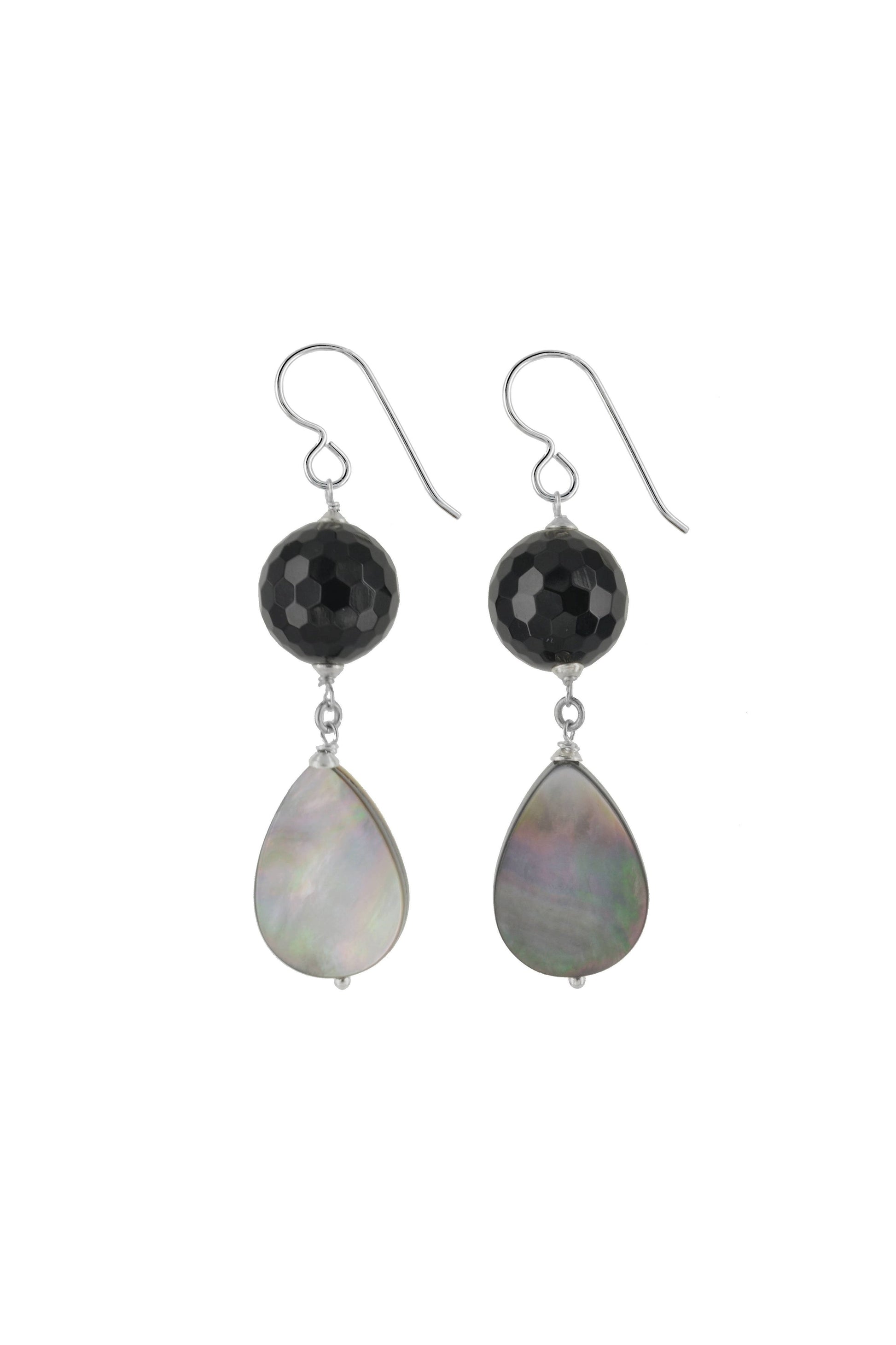 Black Onyx, White Mother of Pearl Long Dangle Earrings