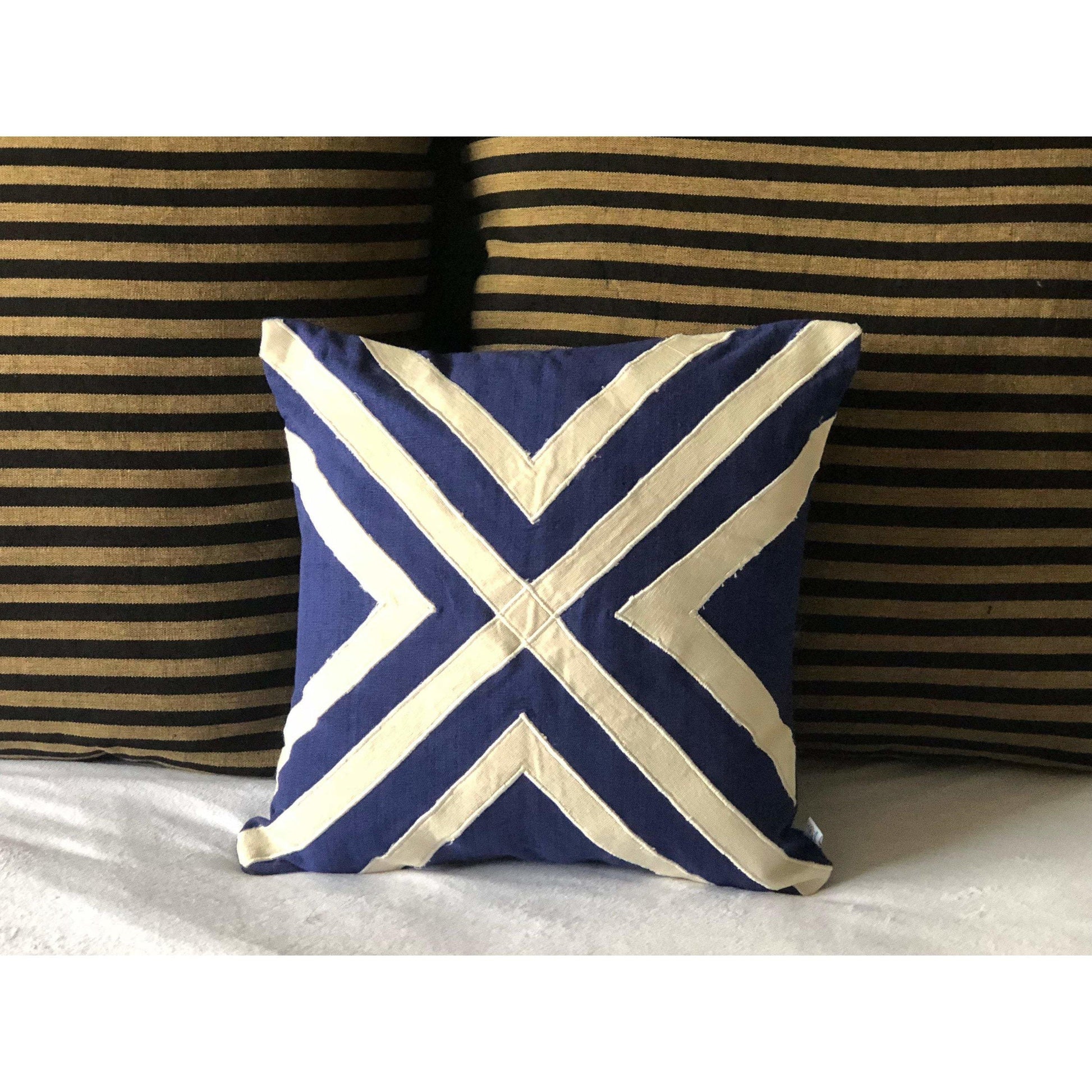 Abstract hand woven cotton pillow cover in blue and ivory is trendy. The decorative pillow cover is an accent pillow for your living room.