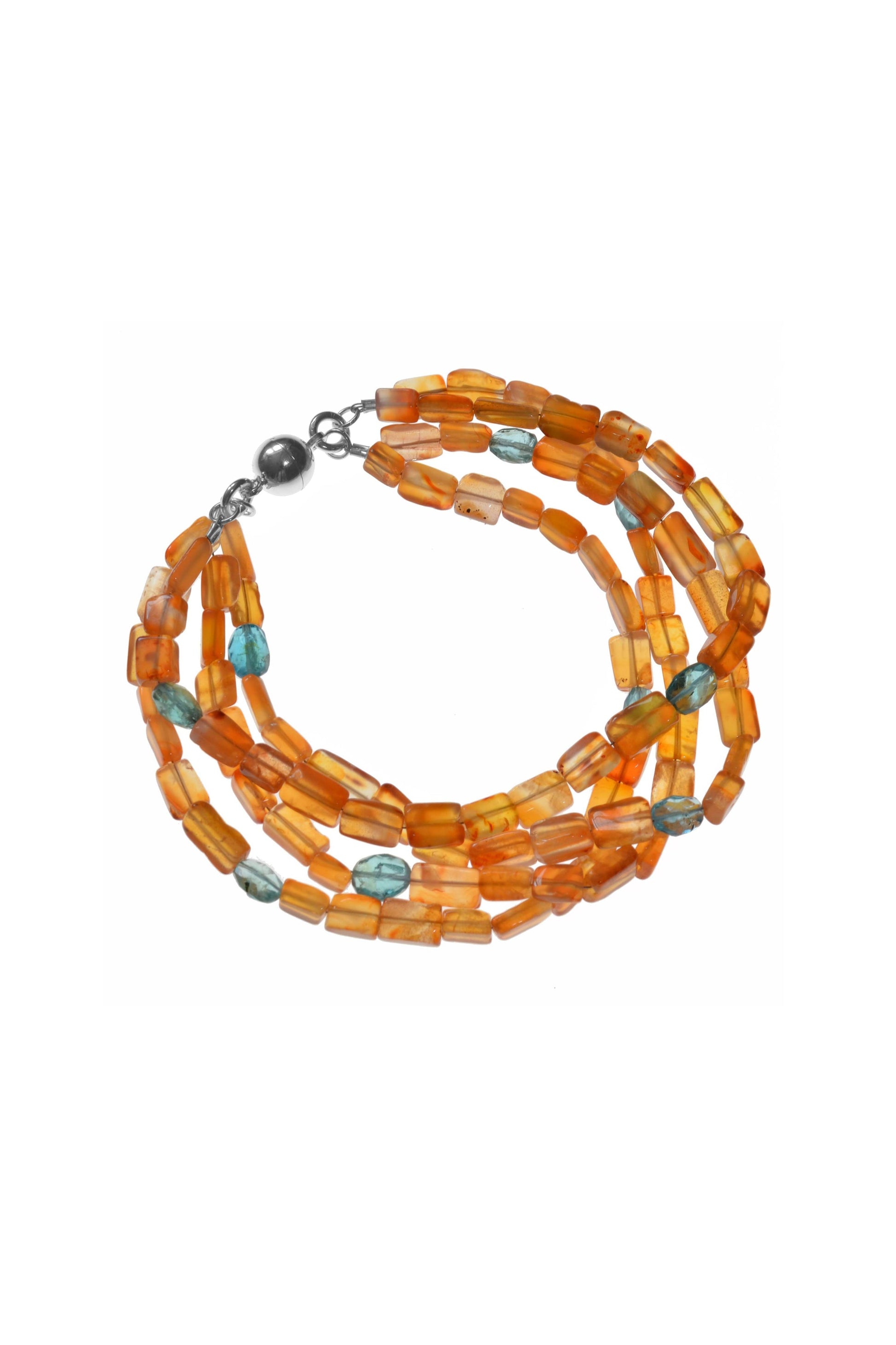 Blue Apatite, Orange Carnelian Bead Bracelet