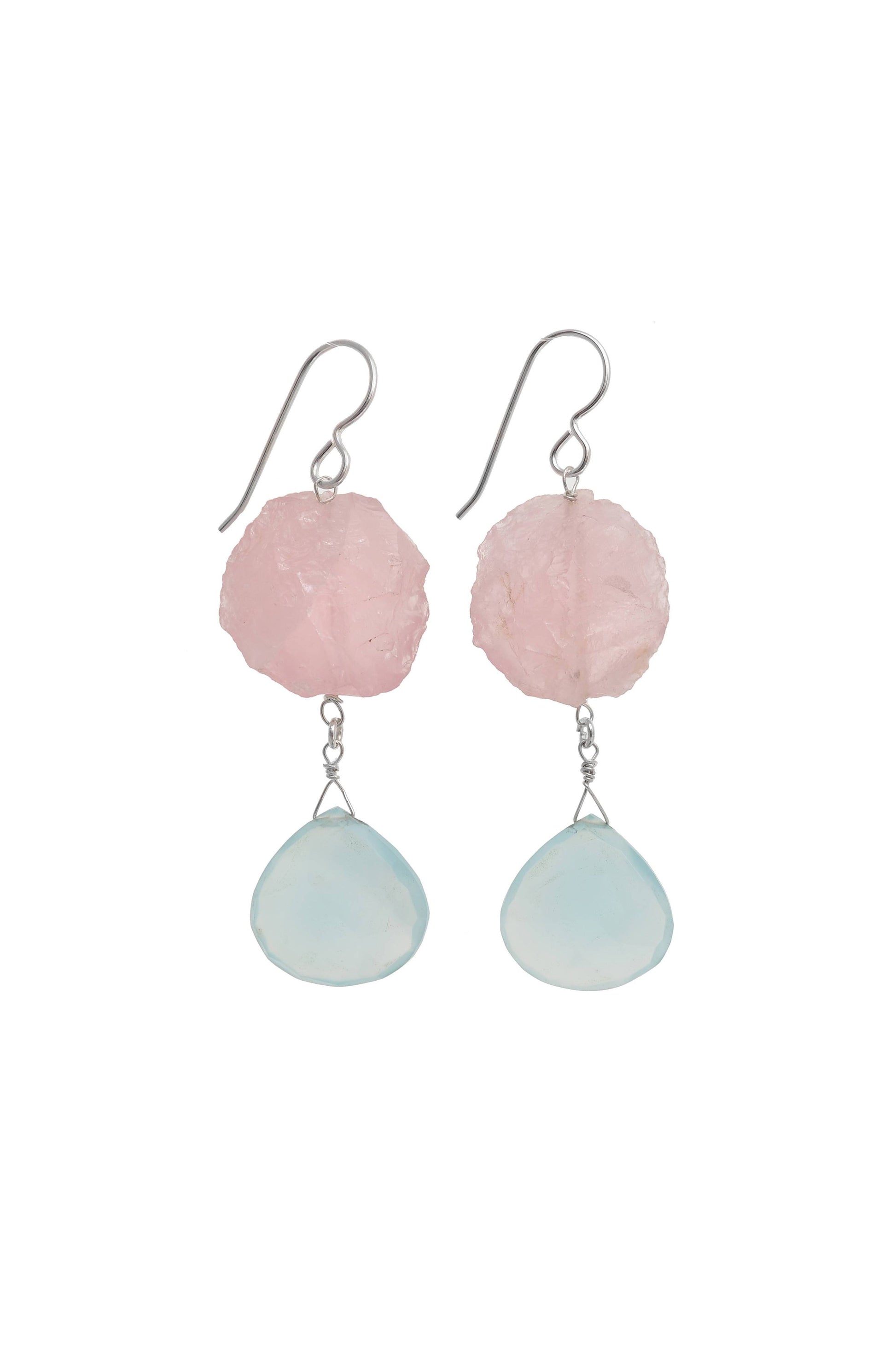 Blue Chalcedony, Rose Quartz Gemstone Large Earrings