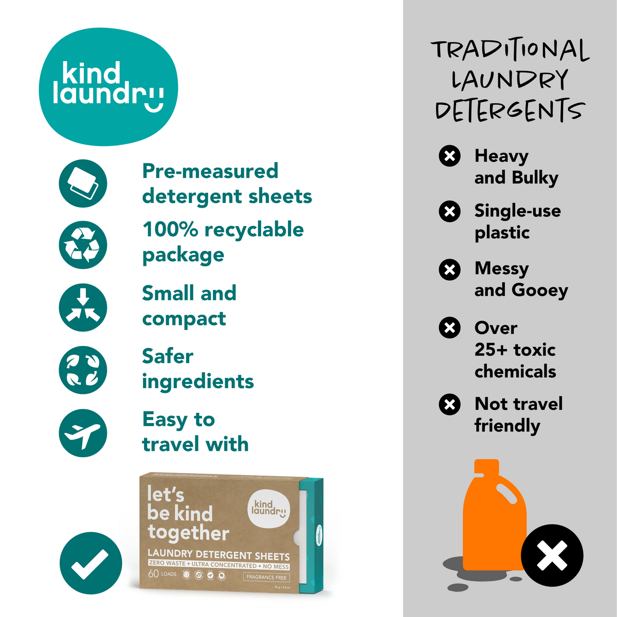 Made with zero-waste packaging and safer ingredients, our laundry detergent sheets is more eco-friendly than most conventional detergents out there. Goodbye single-use plastic jugs and packaging.