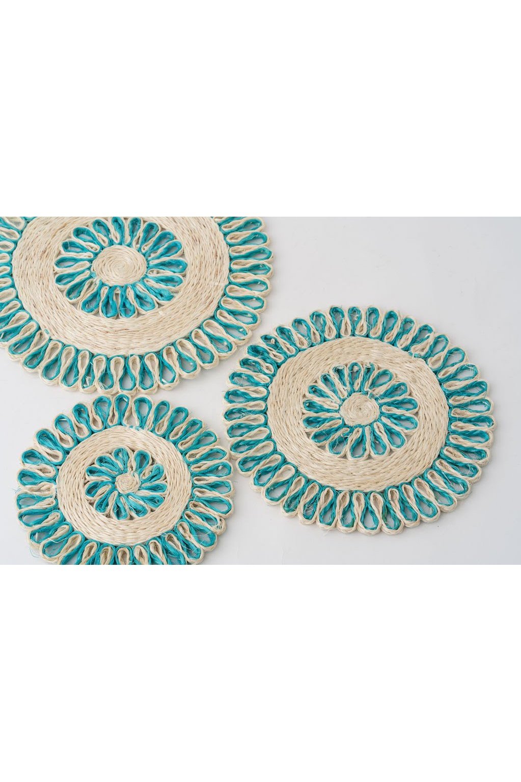 Handwoven Seagrass Placemat | Trivet | Aqua blue