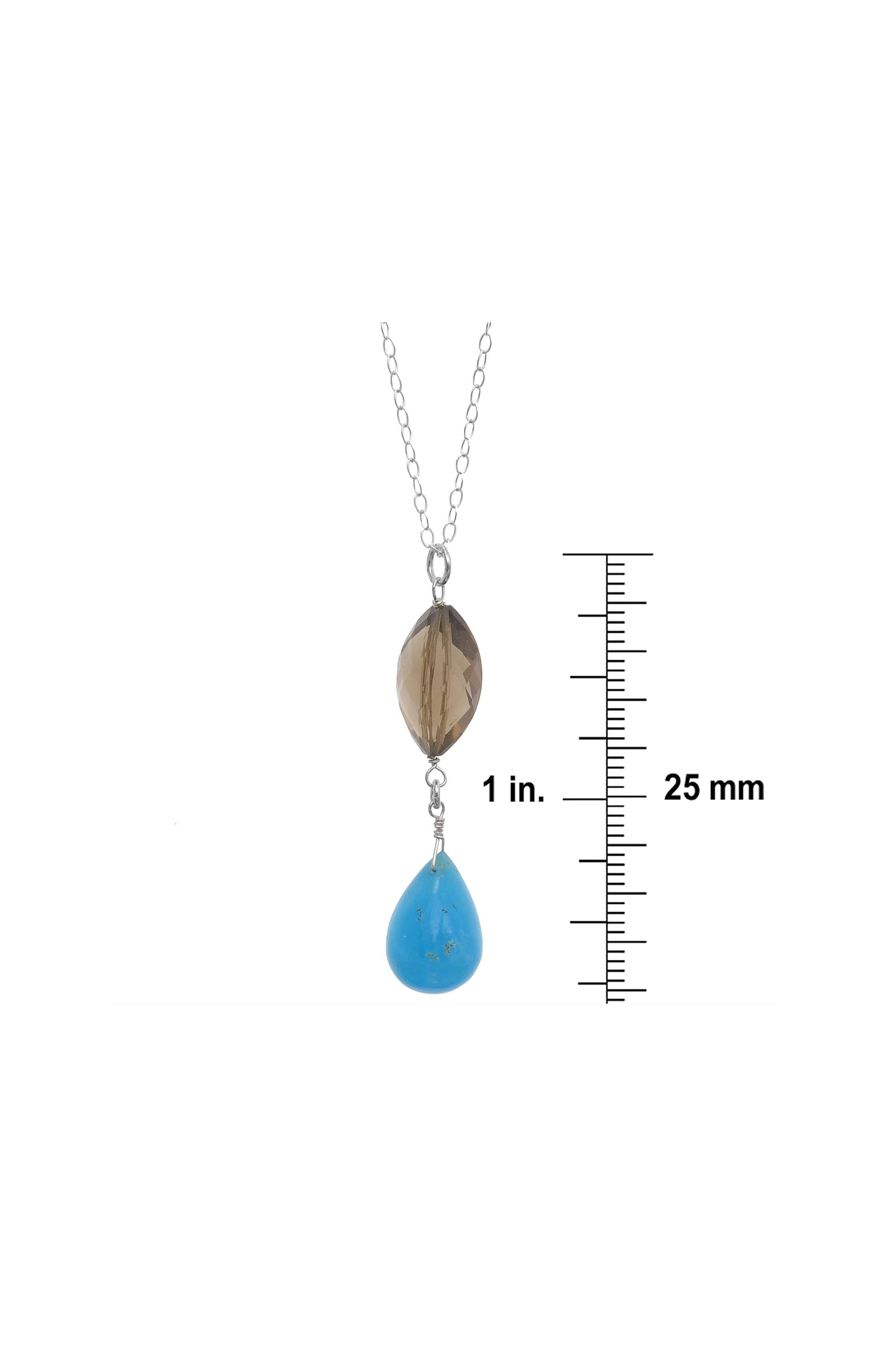 This pretty dangle 18 inch necklace is handmade with a rare hemimorphite briolette gemstone, measuring about 10 carats, and accentuated by a smokey quartz marquise gemstone bead.