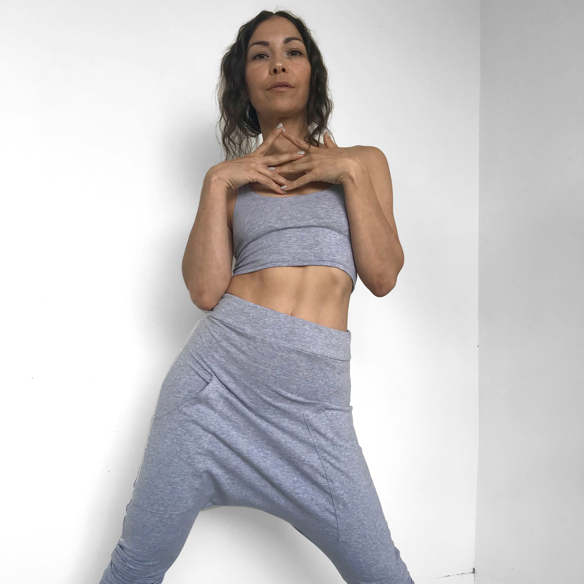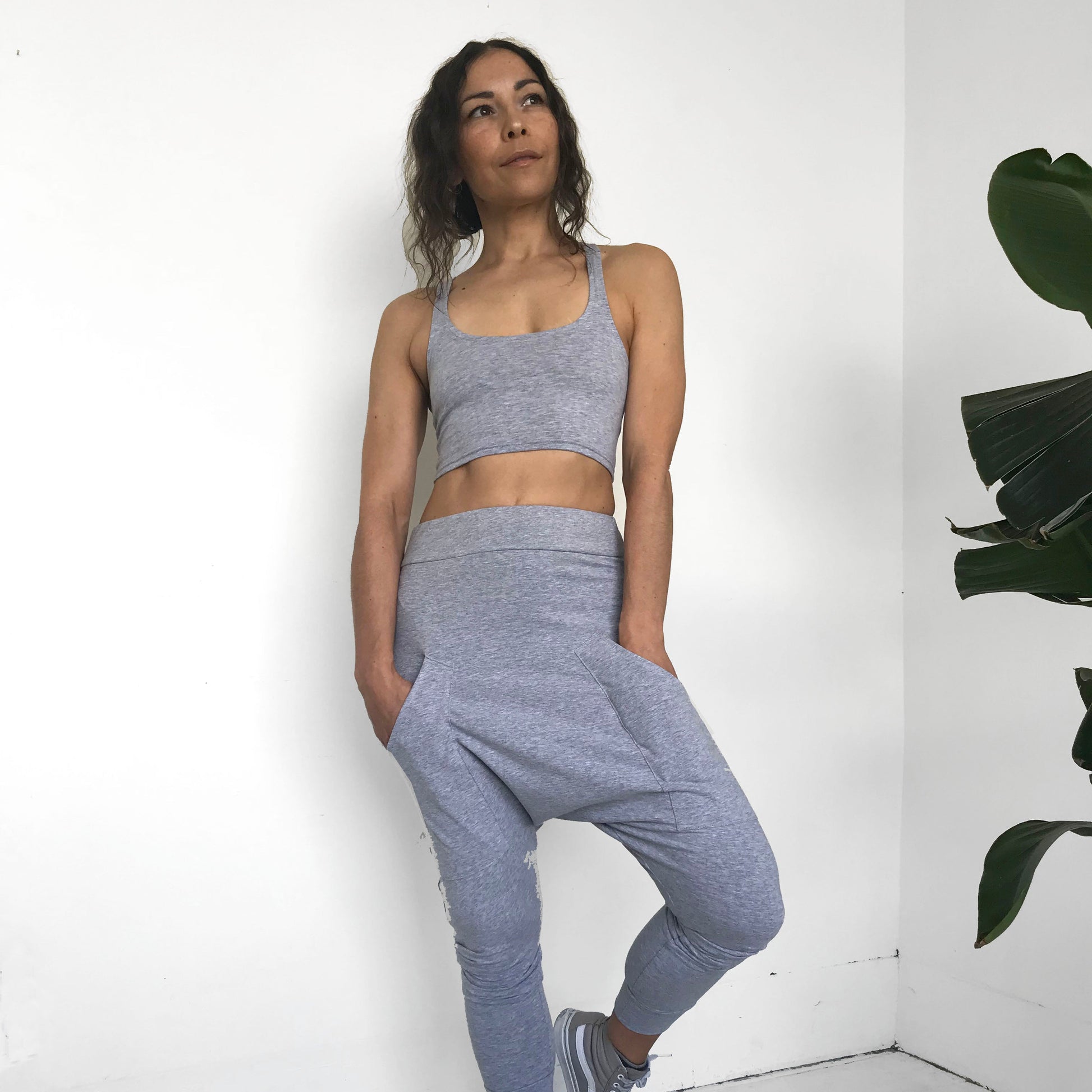 Long drop-crotch pants, soft cotton w/ a bit of lycra for stretch & hold. Perfect for everyday & yoga classes & the athleisure life. Minimalist chic. Sustainable Eco Fashion