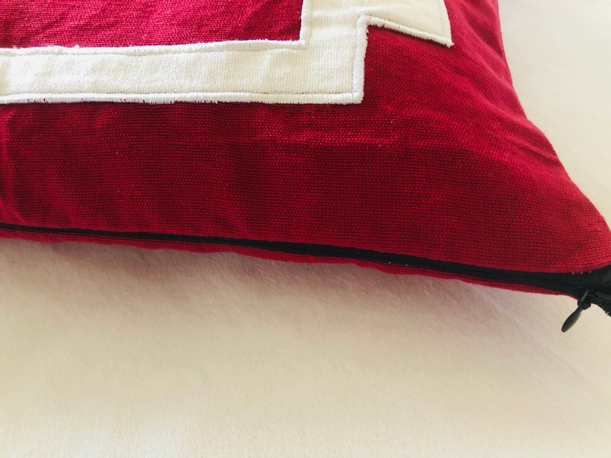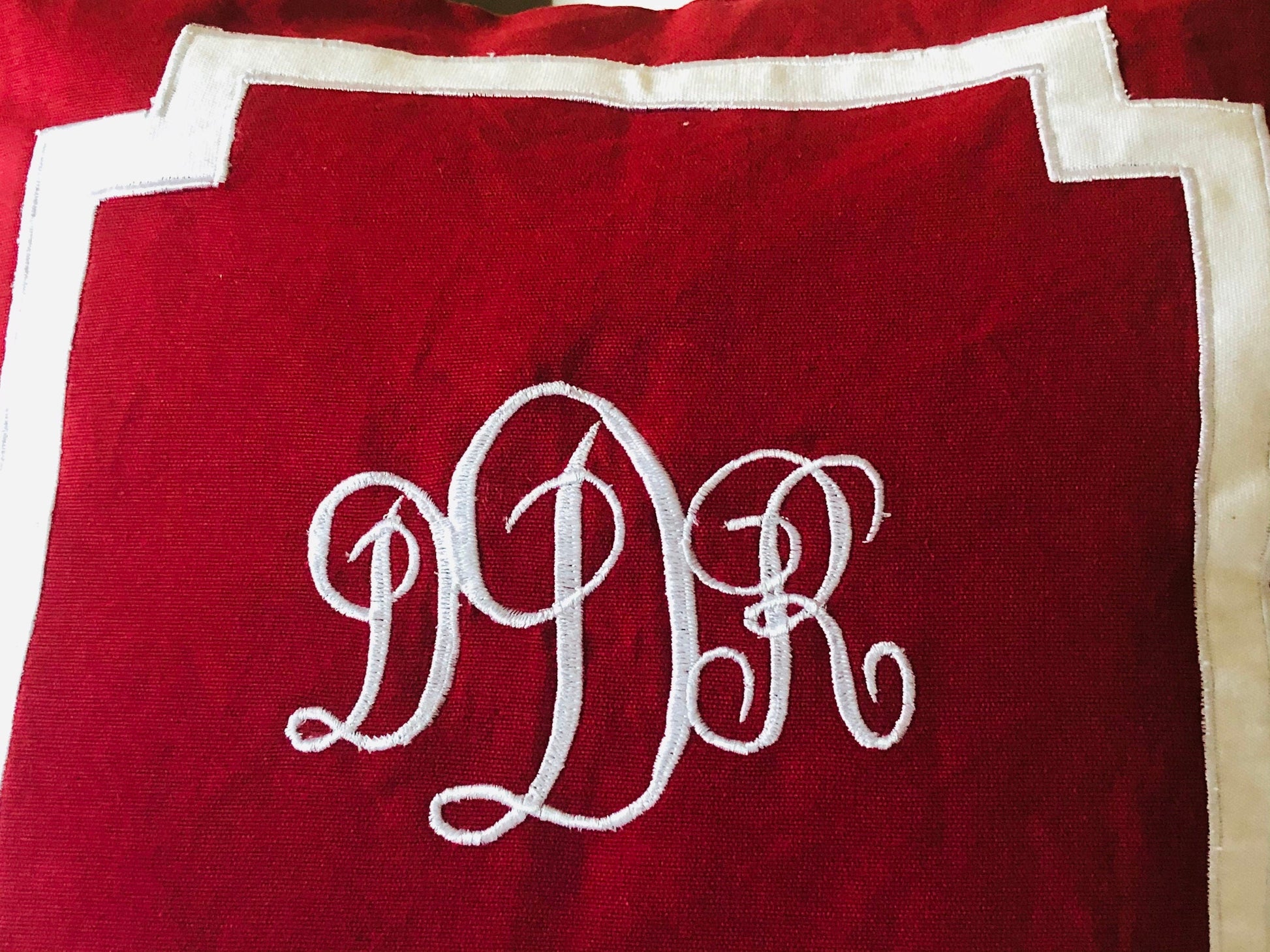 Embroidered personalized monogrammed gray pillow cover is hand crafted and it is very elegant and ideal to add personality for any living in the house.Give it to someone that you love. 18 inch Monogrammed decorative pillow cover is made with 100% maroon cotton hand loom and appliqued hand cut border and letters in white.