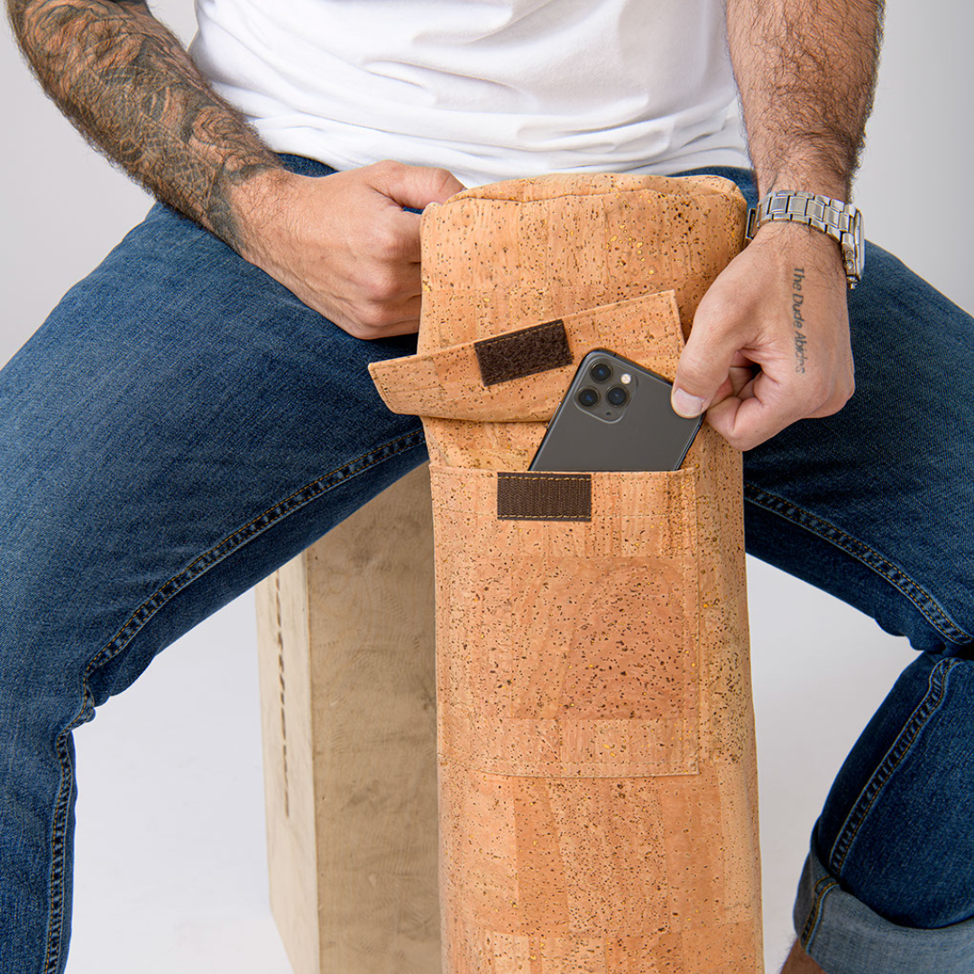 Meet your yoga mat's sidekick! Make yoga practice a little easier with this simple yet functional bag to carry your accessories. Large enough for a standard yoga mat, towel, water bottle and strap! Did you know that cork is the perfect BFF for your workouts? Cork is entirely non-toxic, organic and all-natural. Best yet, sincesince cork repels water, no mold or mildew will not form on your yoga mat.DetailsShoulder strap for comfortable carryingExterior velcro pocket for quick grab for small items (fits iPhone 11)Dimensions26L x 7W x 7HWeight 0.52 lbsCork + SustainabilityCork is vegan, hypoallergenic, antimicrobial, waterproof, lightweight, durable, biodegradable and recyclableSince cork is a natural material, each product can have slight color, texture, and grain variationThis product is handmade in Portugal from sustainably sourced cork, ethically produced, PETA approved vegan, cruelty free and eco-friendlyCare InstructionsWipe down with a wet clothLet air dryNot suitable for washing machinesMeet your yoga mat's sidekick! Make yoga practice a little easier with this simple yet functional bag to carry your accessories. Large enough for a standard yoga mat, towel, water bottle and strap! Did you know that cork is the perfect BFF for your workouts? Cork is entirely non-toxic, organic and all-natural. Best yetMeet your yoga mat's sidekick! Make yoga practice a little easier with this simple yet functional bag to carry your accessories. Large enough for a standard yoga mat, towel, water bottle and strap! Did you know that cork is the perfect BFF for your workouts? Cork is entirely non-toxic, organic and all-natural. Best yet
