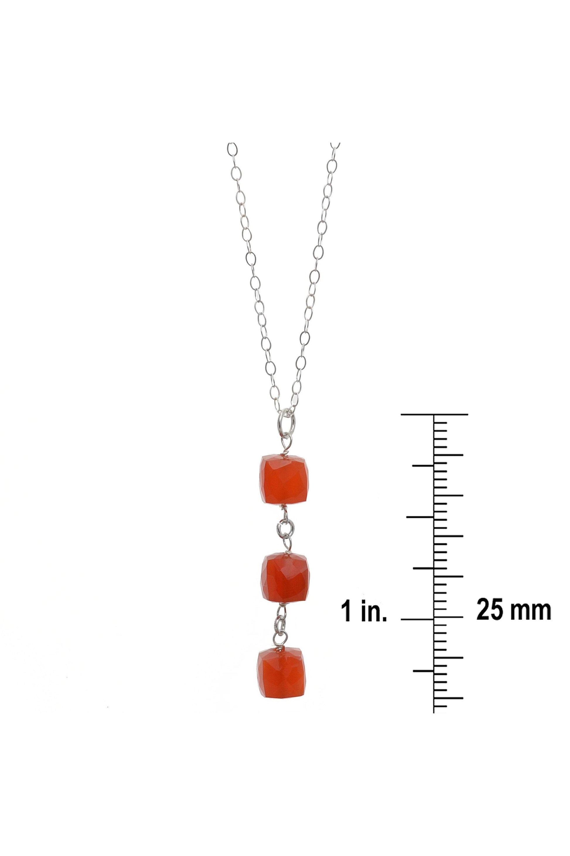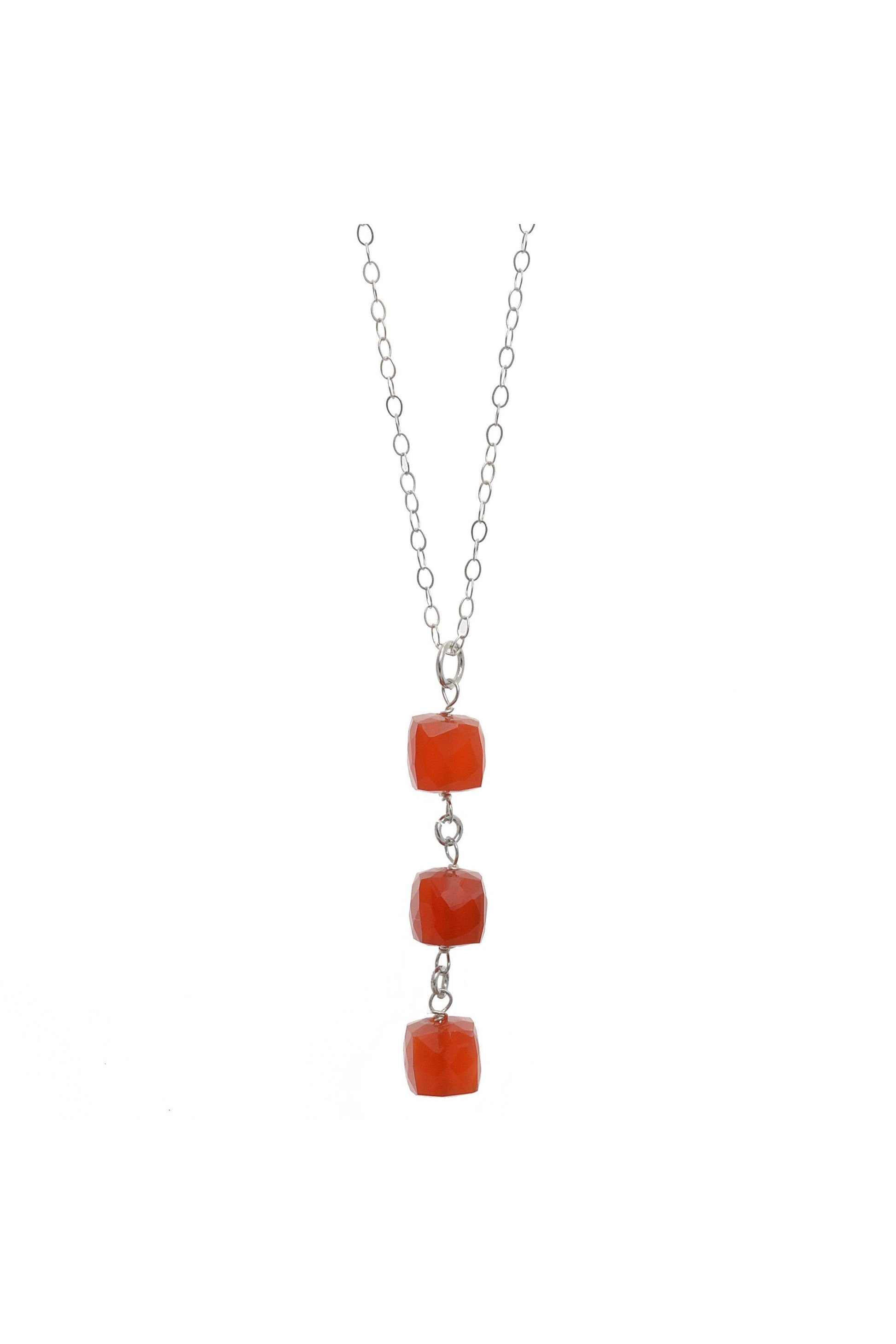 This lovely dangle necklace is handmade with three orange carnelian faceted gemstones, measuring about 3 carats, on an 18 inch cable chain.