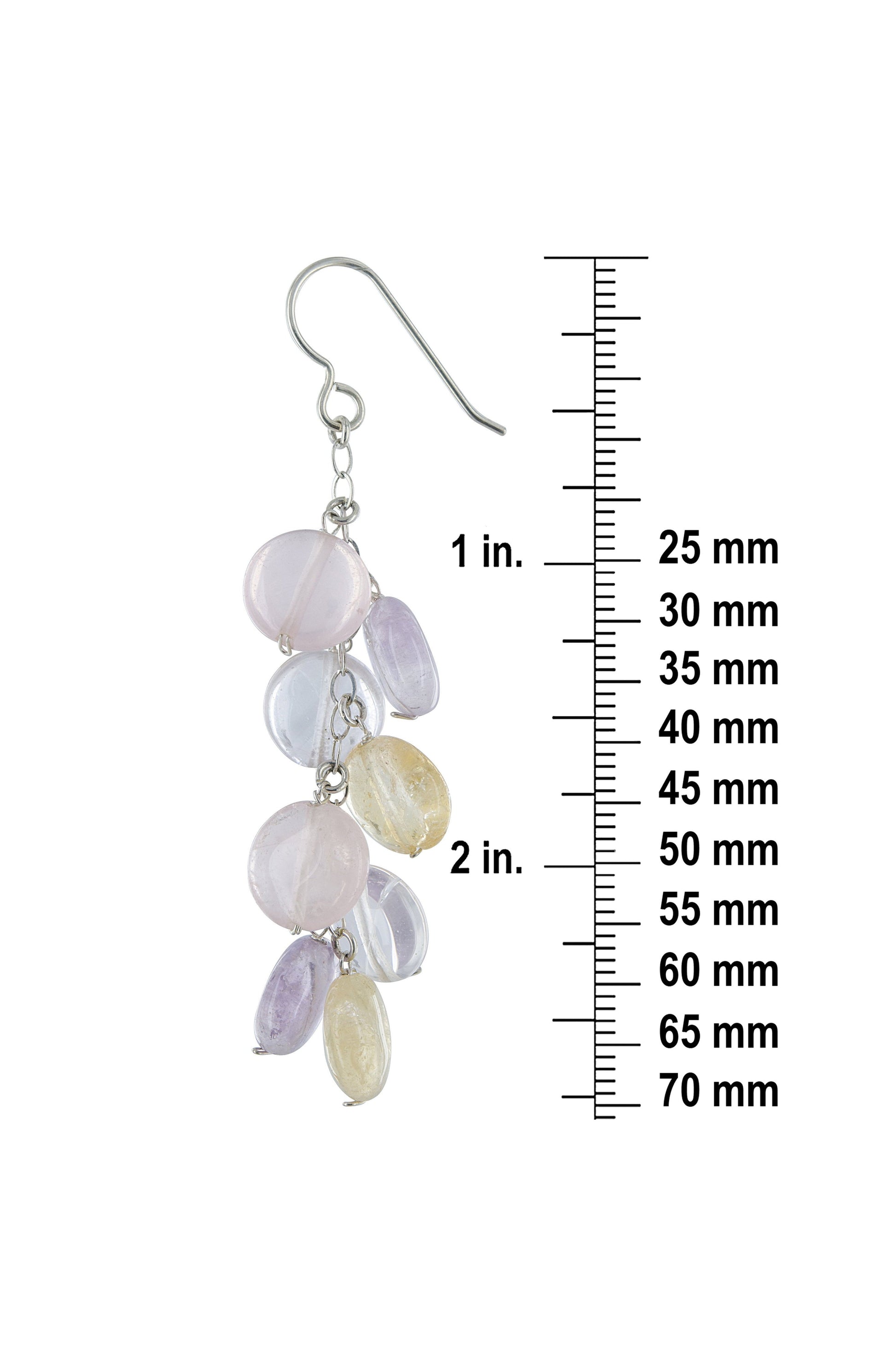 Three golden Citrines, two Rose Quartz, and two purple Amethyst gemstones combine in an intricate formation to create this exquisite pair of dangle drop earrings.