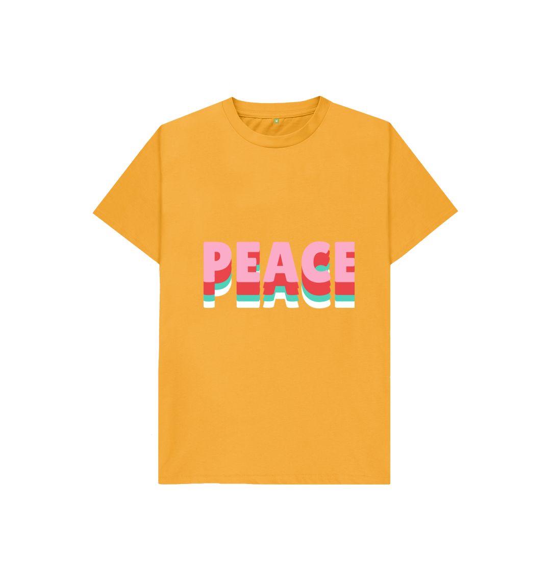 At the front of this enchanting t-shirt, you'll find the word "Peace" elegantly inscribed, serving as a gentle reminder to embrace tranquility and compassion in our daily lives. The uplifting message carries a powerful meaning, symbolizing unity, understanding, and a desire for a harmonious world.