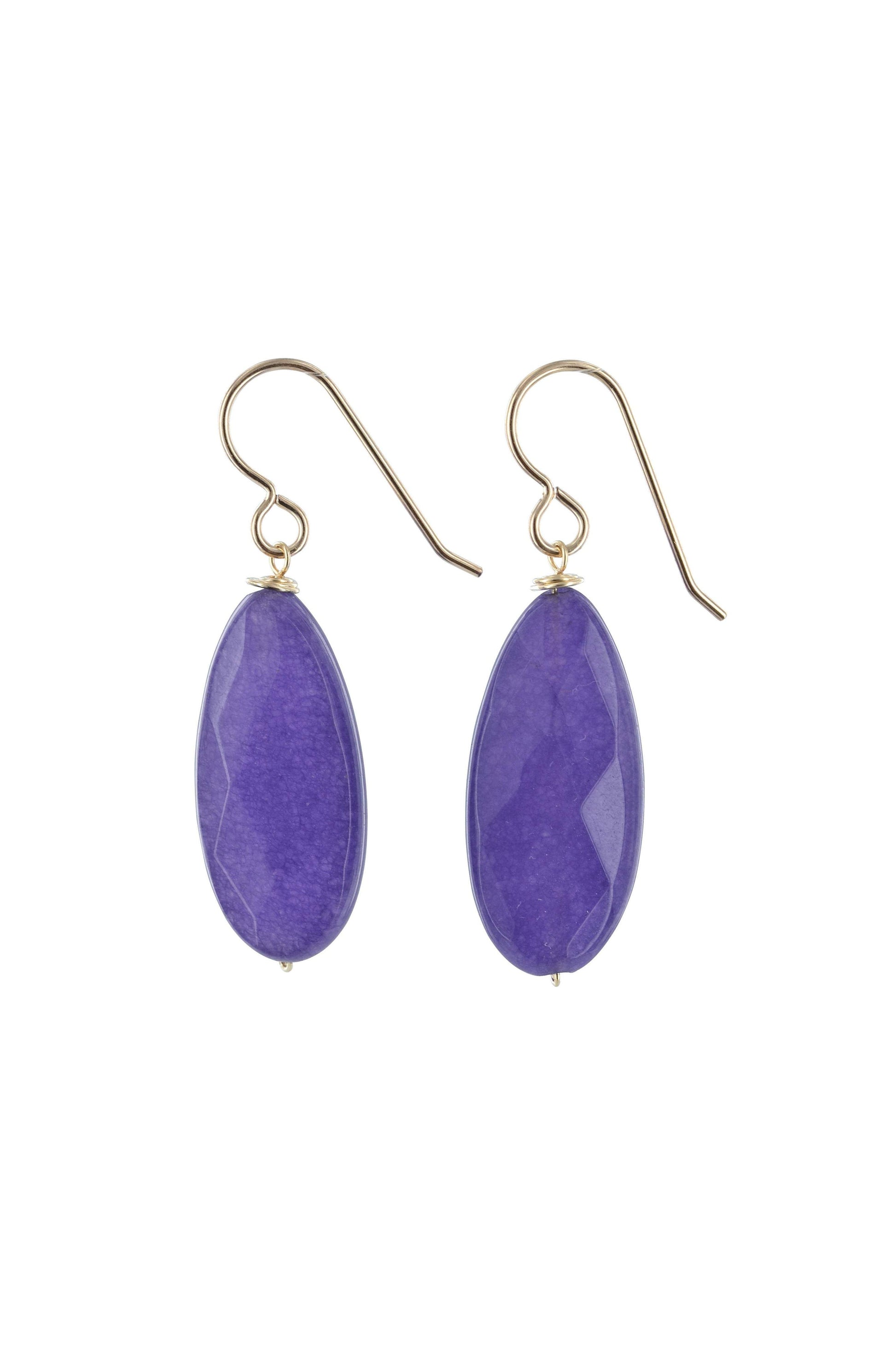 Stylishly and simple, this pair of purple drop earrings are handmade with two deep purple Jade quartz gemstones.