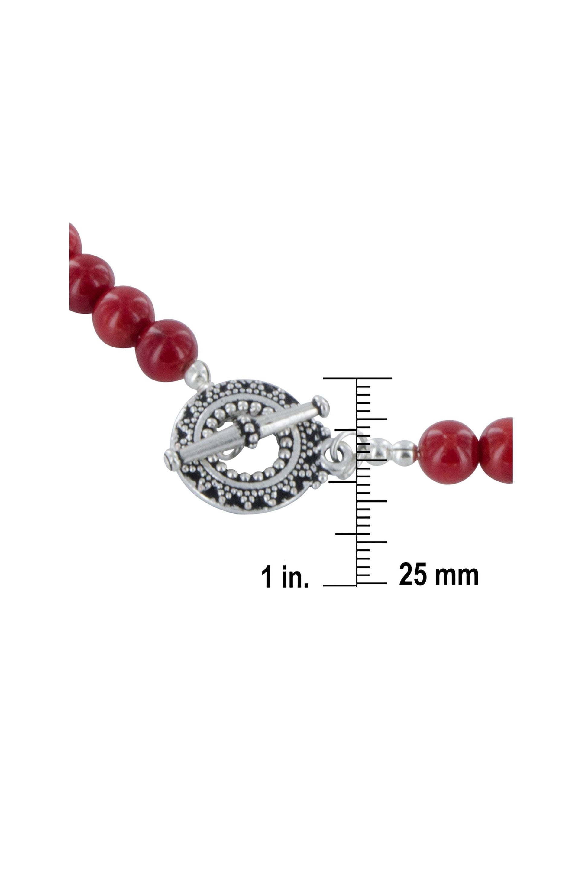 This single strand 18 inch necklace of Red Coral Bamboo is simply elegant. The vibrant color is just irresistible, enough to lift your spirits and jazz up an outfit at the same time. We have also added a special feature to this necklace, which is the Bali style toggle clasp made of Gold plated Pewter. Intricately carved it certainly brings in more pizzazz to an already striking item of jewelry.