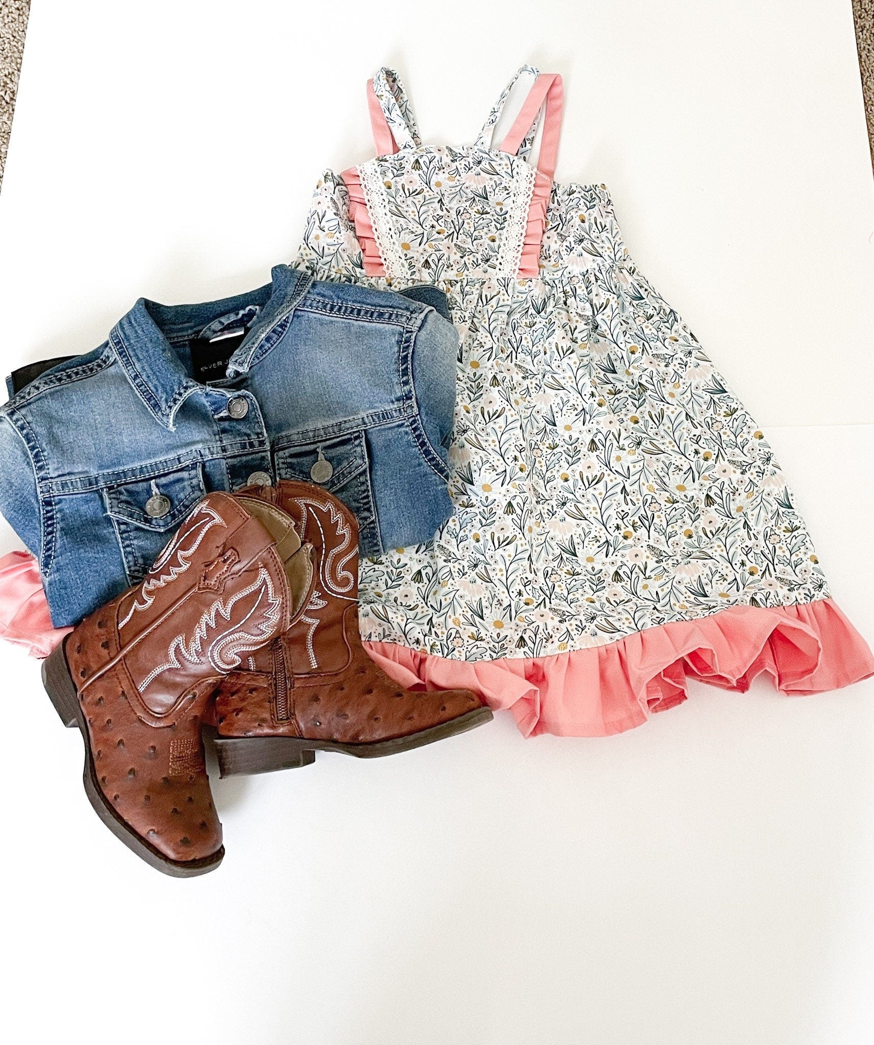 Custom Made Spring Easter Girls Floral Pink Sun Dress. Made in Canada by Oakley Rae Handmade