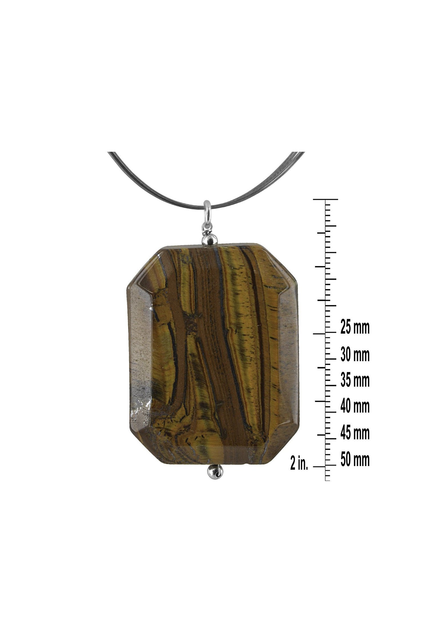 95 carats made with an 18 inch Stainless Steel multi cable wire with Sterling silver clasp.The Tiger's Eye is very unique given that its color patterns in shades of brown differ in each one along with the black markings that can be seen all over the stone. Here is an item of jewelry that expresses understated elegance through simple design.