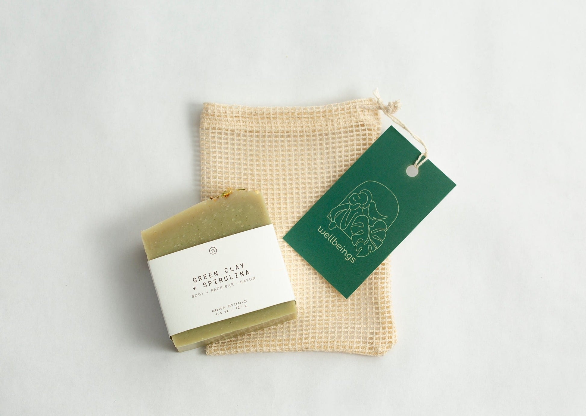 - Soap Saver Pouch: simply place your favorite soap inside the pouch for a gentle lather and exfoliation from natural fibers.