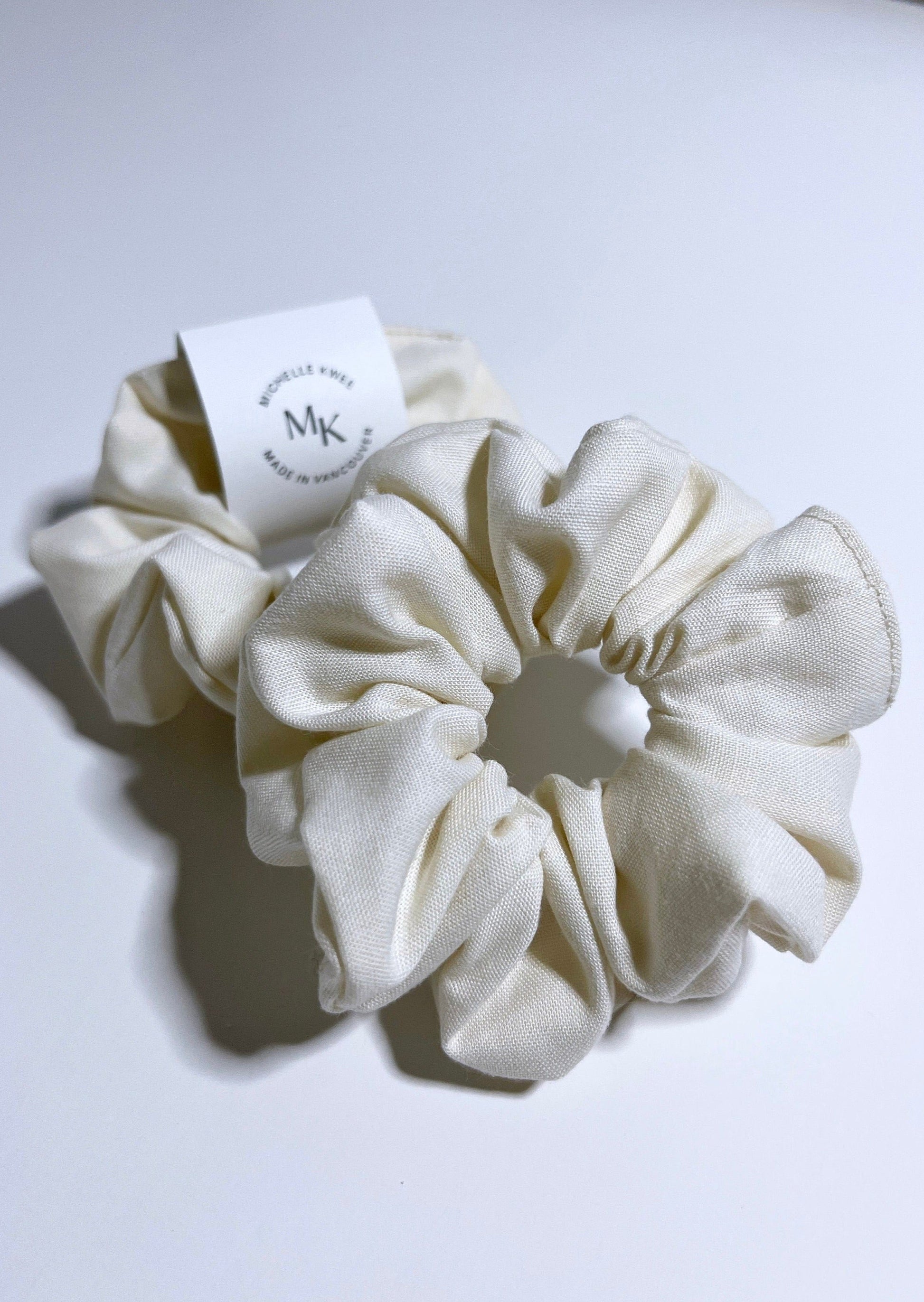 - Cotton Champagne Scrunchie: locally handmade with fabric offcuts.