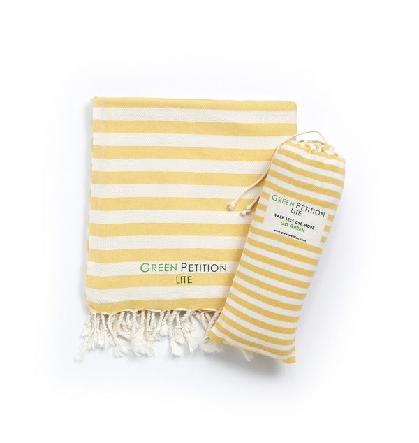 The Mare Ochre peshtemal has been designed to be a timeless addition to any bathroom, closet or even beach bag. One of the main ideas behind the Green Petition brand was creating items that are not only developed from recycled materials but also creating items that are going to last. Many styles and colours go out of fashion, which is why the beautiful Ochre colour and the timeless and elegant striped design are what adorn the material of this beautiful peshtemal.