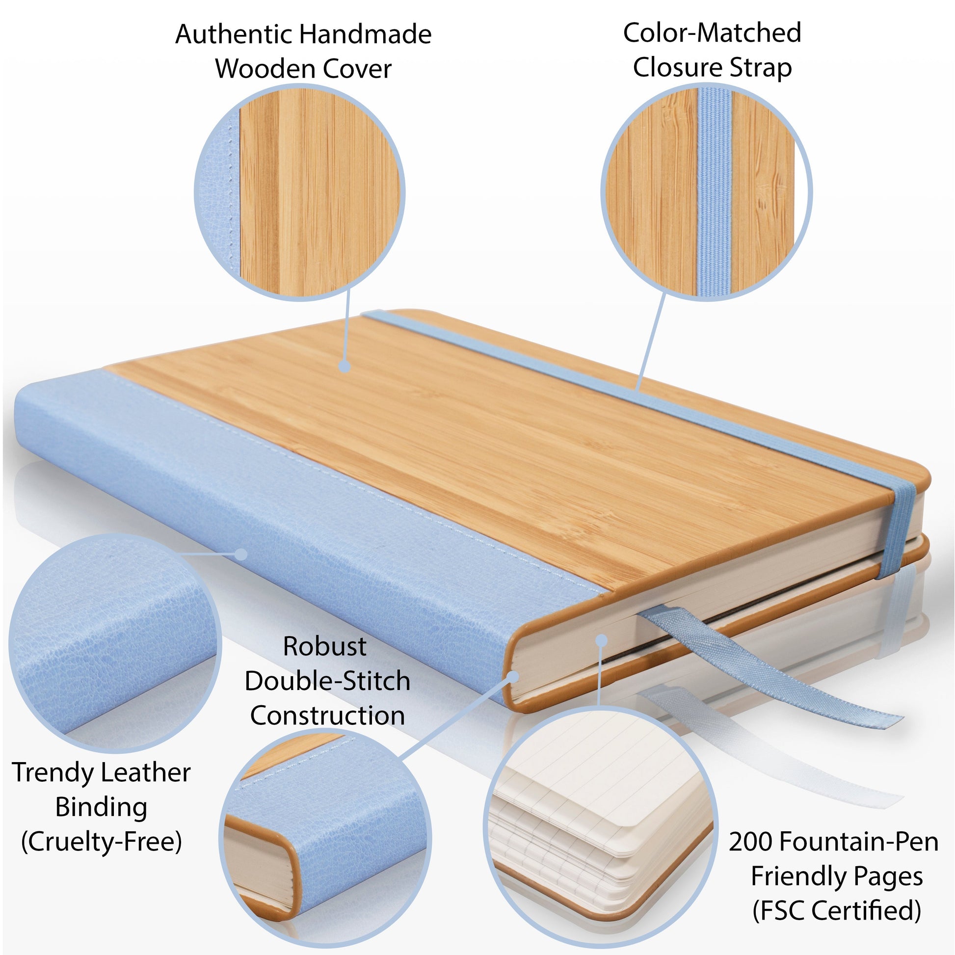 What is it: Handmade free-form journal with a durable wooden cover complemented by a colorful cruelty-free leather binding; this is a one-of-a-kind product.